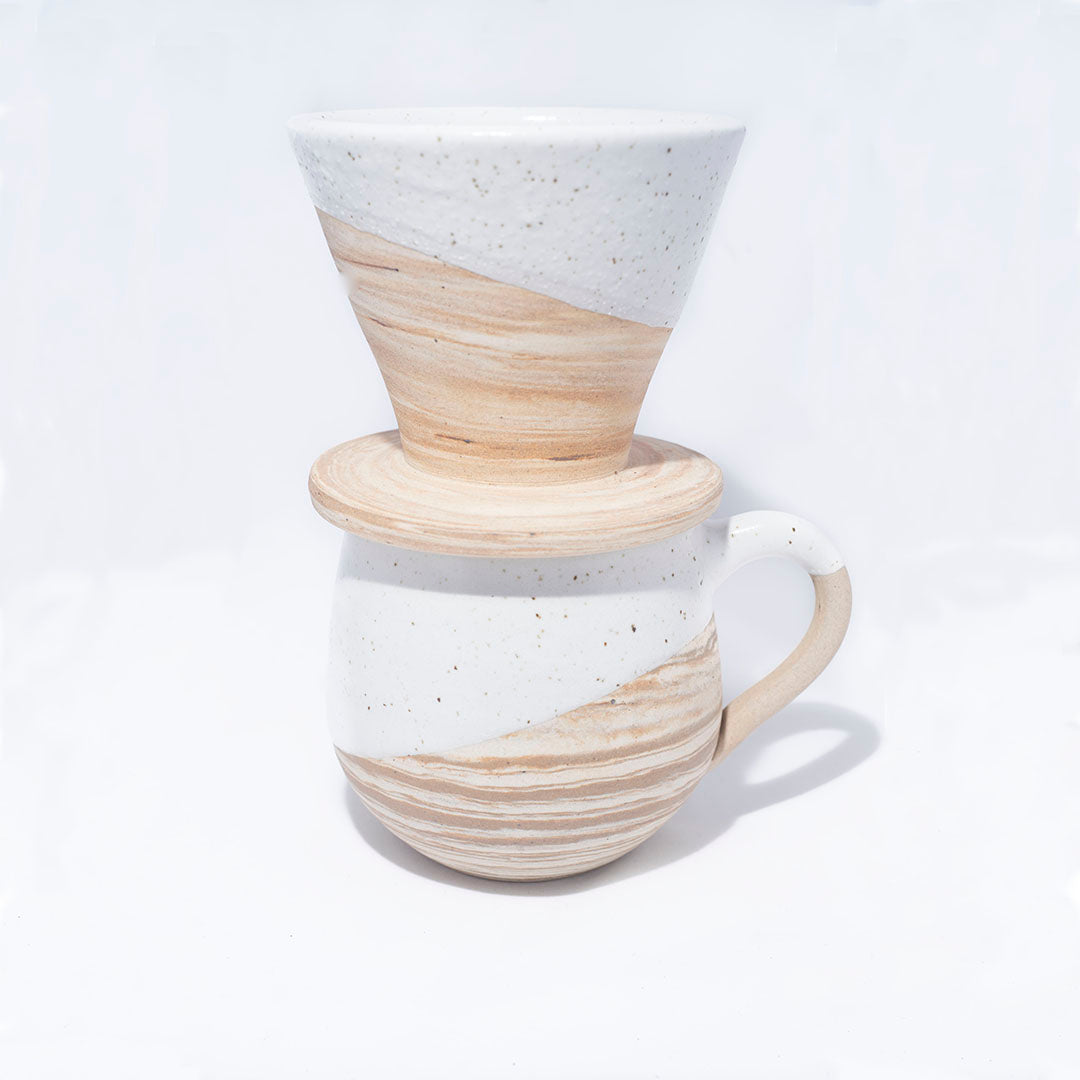 La colección Agatha celebra la belleza de lo artesanal y lo contemporáneo. Cada pieza es elaborada a mano en horno de alta temperatura, donde el fuego revela el carácter único de la arcilla. Su distintivo efecto marmoleado en dos tonos nace de la mezcla precisa de arcillas naturales, creando contrastes sutiles que dialogan con esmaltes sólidos y reactivos de gran profundidad visual.